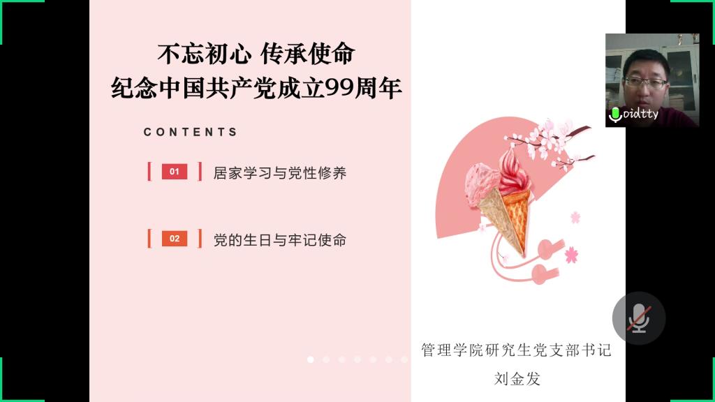 2020年6月23日17时,风车动漫 研究生党支部在线上开展"支部书记讲党课"活动。本次党课主题为“不忘初心,传承使命——庆祝中国共产党成立99周年”。风车动漫 研究生党支部书记刘金发同志担任主讲人。