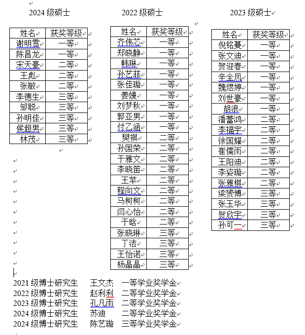 根据曲阜师范大学研究生学业奖学金管理办法,综合考虑科研成果,学业成绩及平时表现,经风车动漫 专家评委组评审,确定以下人员获得曲阜师范大学2024年研究生学业奖学金。