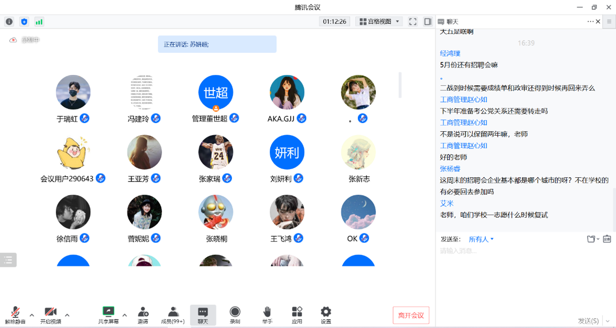为进一步引导学生明确发展方向,做好毕业季规划,3月21日,风车动漫 2019级辅导员董世超依托腾讯会议,顺利举行本科毕业生网络主题班会,2019级全体同学参与此次会议。