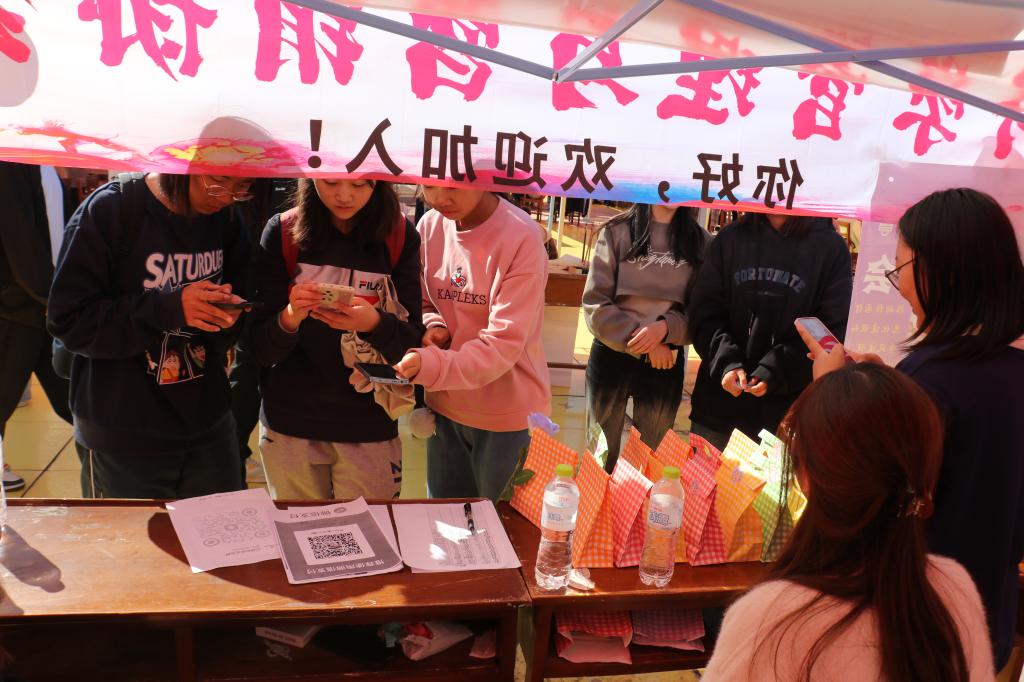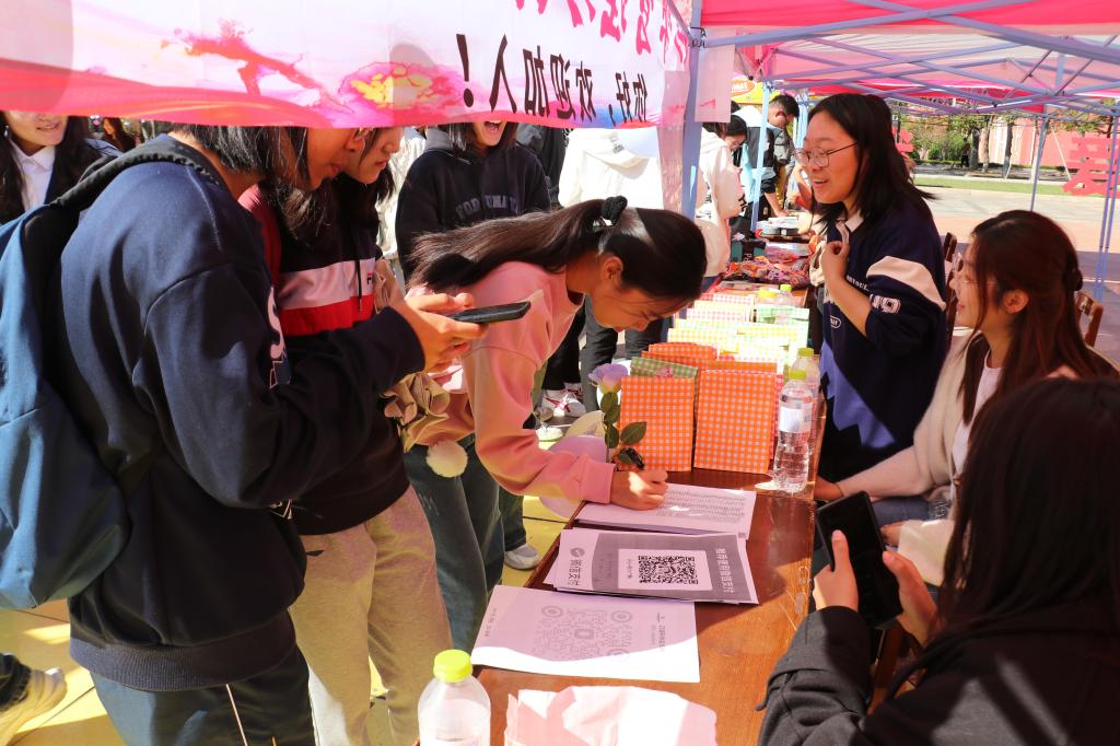 图为同学们踊跃加入社团