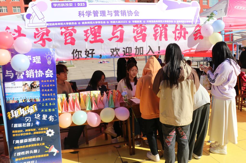 (通讯员:马凤敏 摄影:马凤敏)10月21日,曲阜师范大学“百团大战”社团纳新活动在日月广场拉开帷幕,各社团大显身手,活动现场气氛热烈,吸引众多同学的关注。