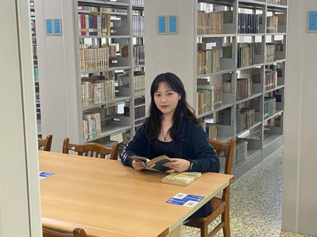 图为保研师姐在图书馆学习