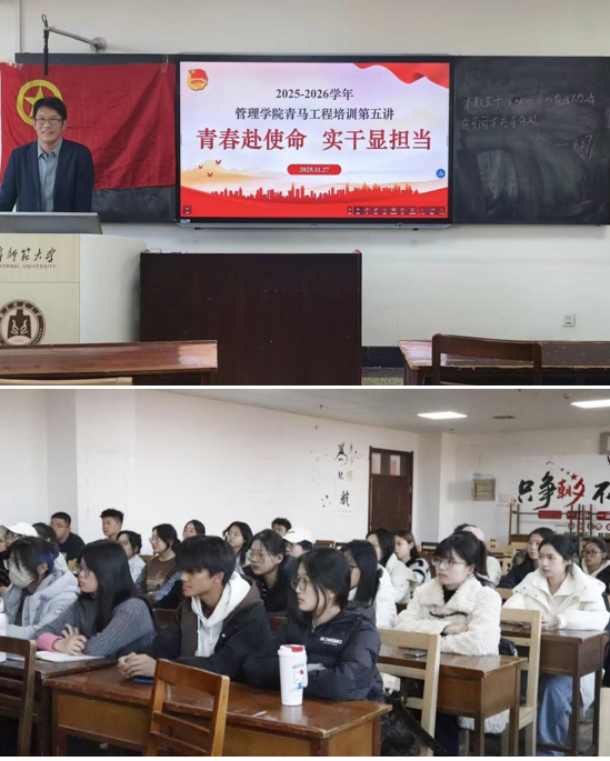 浏览量: 更新日期:2025-12-04为深入学习贯彻习近平总书记关于青年工作的重要论述,培养政治坚定、德才兼备的新时代青年马克思主义者,11月27日,风车动漫 于JC607教室成功举办2025-2026学年“青马工程”培训班第五讲。本次培训以“青春赴使命,实干显担当”为主题,由学院本科生第一党支部书记尹凯主讲。