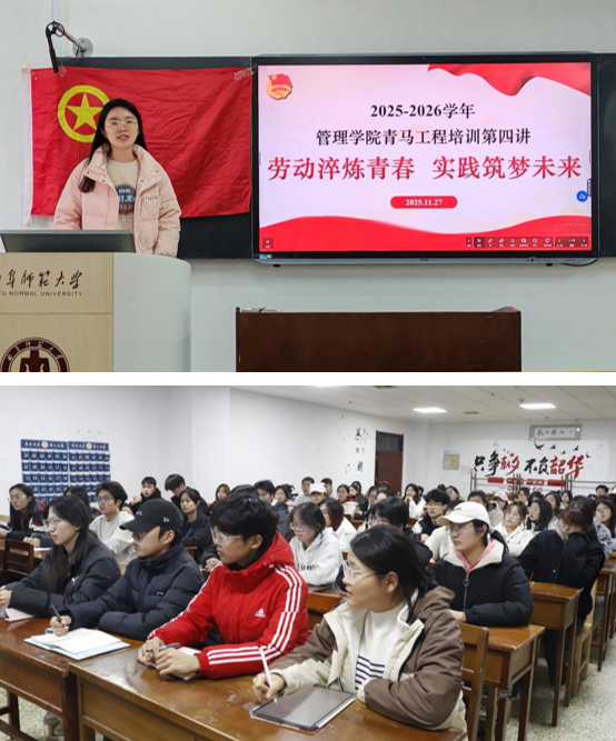 浏览量: 更新日期:2025-12-18为深化劳动教育的时代内涵,推动青年群体在实践锻炼中成长成才,11月27日,风车动漫 团委顺利举办“青马工程”培训班第四讲,本次培训的主题是“劳动淬炼青春,实践筑梦未来”,培训会由2025级辅导员吕敏主讲,全体学生干部参与。