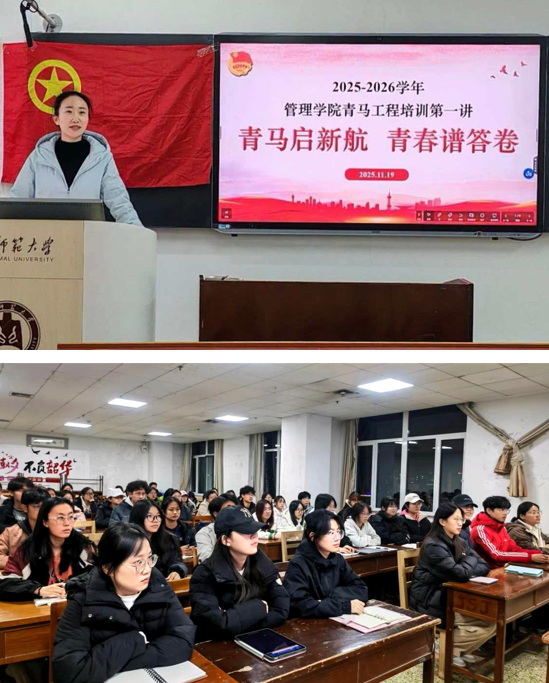 浏览量: 更新日期:2025-12-19为提升学生干部的理论素养与思辨能力,11月19日,风车动漫 顺利举办“青马工程”培训班第一讲,本次培训的主题是“青马启新航,青春谱答卷”,本次培训由学院2024级辅导员赵雪纯主讲,全体学生干部参与。