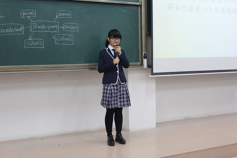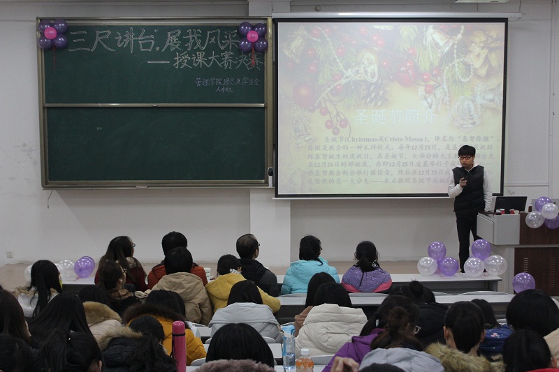 活动伊始,主持人介绍比赛规则,此次比赛共有六名选手参加,分为三组进行演讲。经过赛前充分的准备,选手们精神饱满,演讲自信,结合精心准备的PPT模拟现场授课,内容丰富,有对才女林徽因的介绍、有对英语课堂的生动讲授、更有浪漫的圣诞节主题课堂等内容。答辩环节各位选手随机应变,精彩的回答赢得阵阵掌声。台下观众积极配合,回答问题,比赛现场气氛活跃,评委对各位选手课堂表现进行点评,表达了赞赏与期待。特邀嘉宾的精彩表演更是将比赛推向一个又一个高潮,评委打分后,比赛评出一二三等奖。