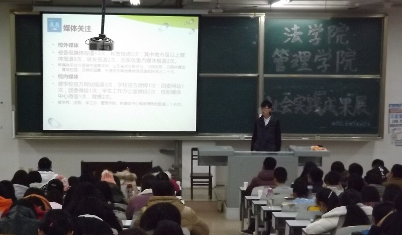 与法学院联合主办的社会实践成果展于JE105顺利举行。我校校学生会社会实践部部长张亮以及各个学院副主席及社会实践部部长参加了此次活动。