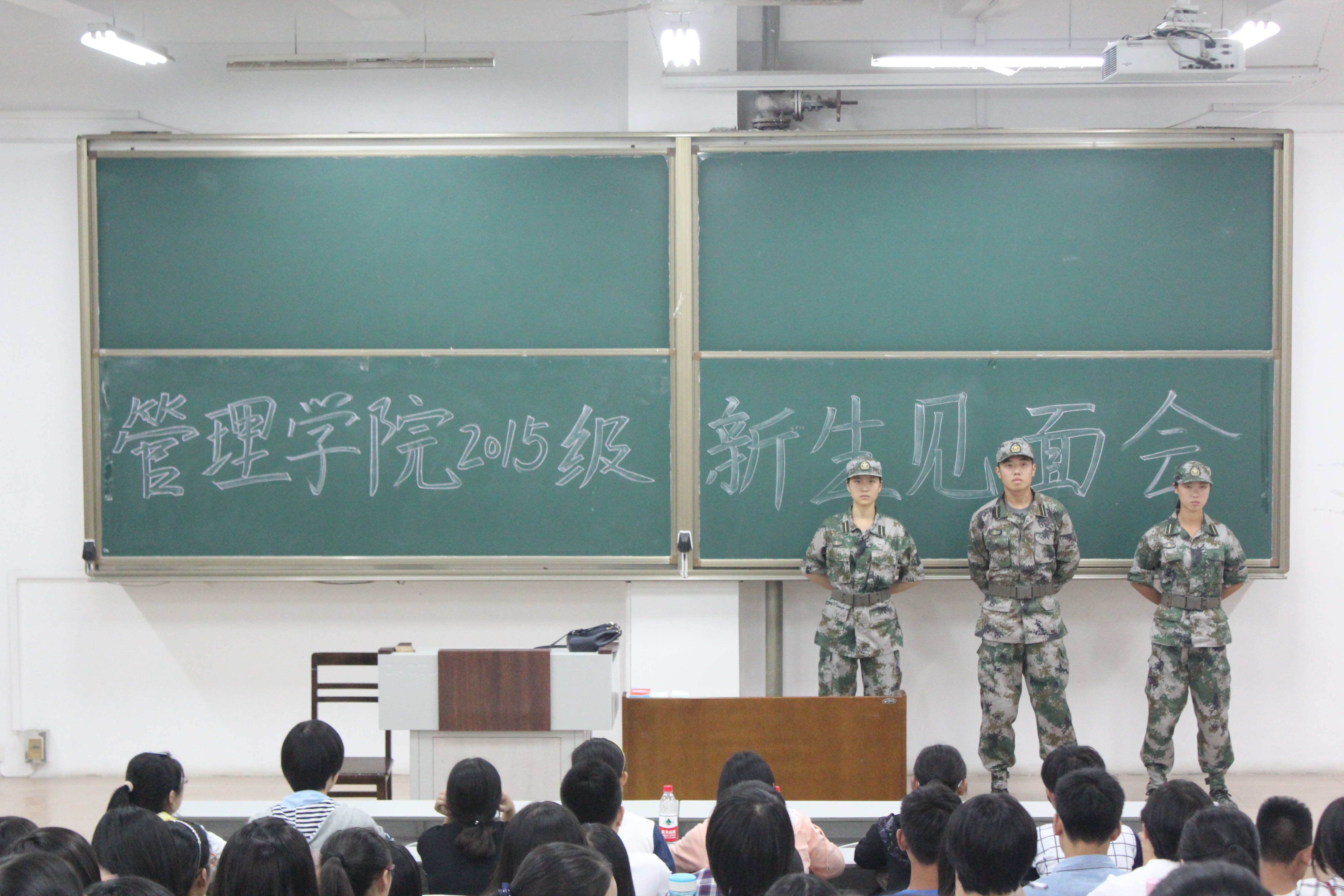 见面会在新同学们热烈的掌声中开始,宋书记向全体新生的到来表示热烈的欢迎和衷心的祝贺,并进行了简单的自我介绍。在强调了即将到来的军训的具体安排之后,宋书记从安全和纪律两大方面展开了此次见面会。她指出,在校期间应快速实现从高中生到大学生的角色转换,履行大学生的职责。“像水一样做人,做一个使别人舒服的人”,宋老师希望全体2015级新同学都能拥有一个有规划、有目标的大学生活。此次新生军训中,风车动漫 三名国旗护卫队成员担任军训教官。见面会上,三位教官依次发言,从着装、饮食、请假三个方面向全体新生强调了军训期间严明的纪律。