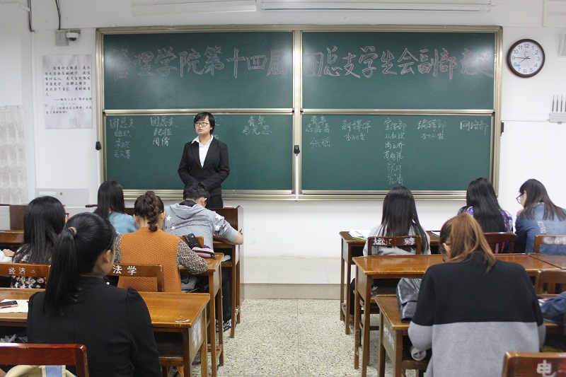 学生工作的发展奉献更多的智慧和汗水。竞选现场紧张又热烈,同学们出色的表现赢得了评委和观众们的阵阵掌声。