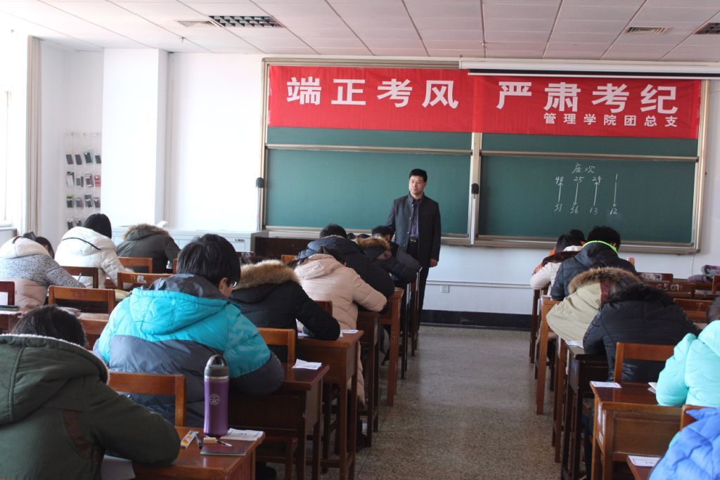 “端正考风,严肃考纪”8个大字警示着考场里的每个人