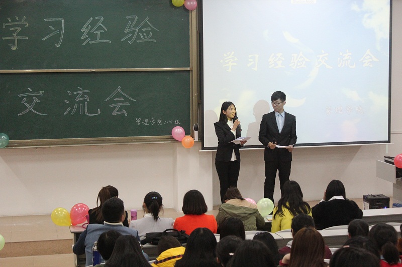会上,左文超和宋钰涵针首先向同学们回顾了自己大学的学习生活,并为大家细心总结了大学课程的学习经验,内容充实,条理清晰。他们共同指出,大学生要重视培养自学能力,多收集一些专业方面的知识。要热爱和珍惜大学的四年时光,做一些真正有意义的事情,提高自己各方面能力。在接下来的互动交流环节,他们耐心而又详细地解答了场下同学们关心的考研及就业问题等问题。整个交流过程中在场同学都在积极参与,现场气氛热烈。随后,2014级的17名学生代表结合着自身优秀学科的学习经验和大家交流了学习的方法和技巧,并一起探讨了学习中存在的一些问题。最后,交流会在同学们热烈的掌声中顺利结束。