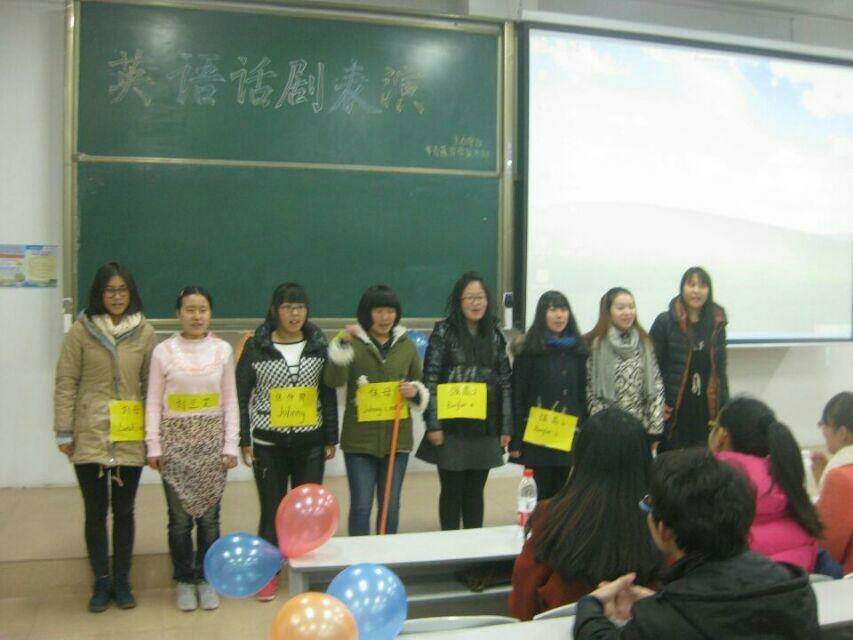 比赛伊始,5支参赛队伍依次上台进行自我介绍,精致的PPT、巧妙的语言让人眼前一亮。在接下来的话剧表演中,《泰坦尼克号》的搞笑表演活跃了现场的氛围,《孔雀东南飞》使同学们重温了当年的幸福时光,《灰姑娘》则带领同学们重走童话般的世界。选手们的出色演技,流利的英语,赢得了同学们的阵阵掌声。在亲友团节目秀环节中,由每队的亲友团上台进行才艺展示并由评委打分,出色的表演调动起同学们的热情,现场观众的积极互动使得活动氛围进入高潮。在进行完最后的“英语顺口溜”环节,活动也接近了尾声。最终,工商管理班凭借出色的表演获得比赛一等奖。