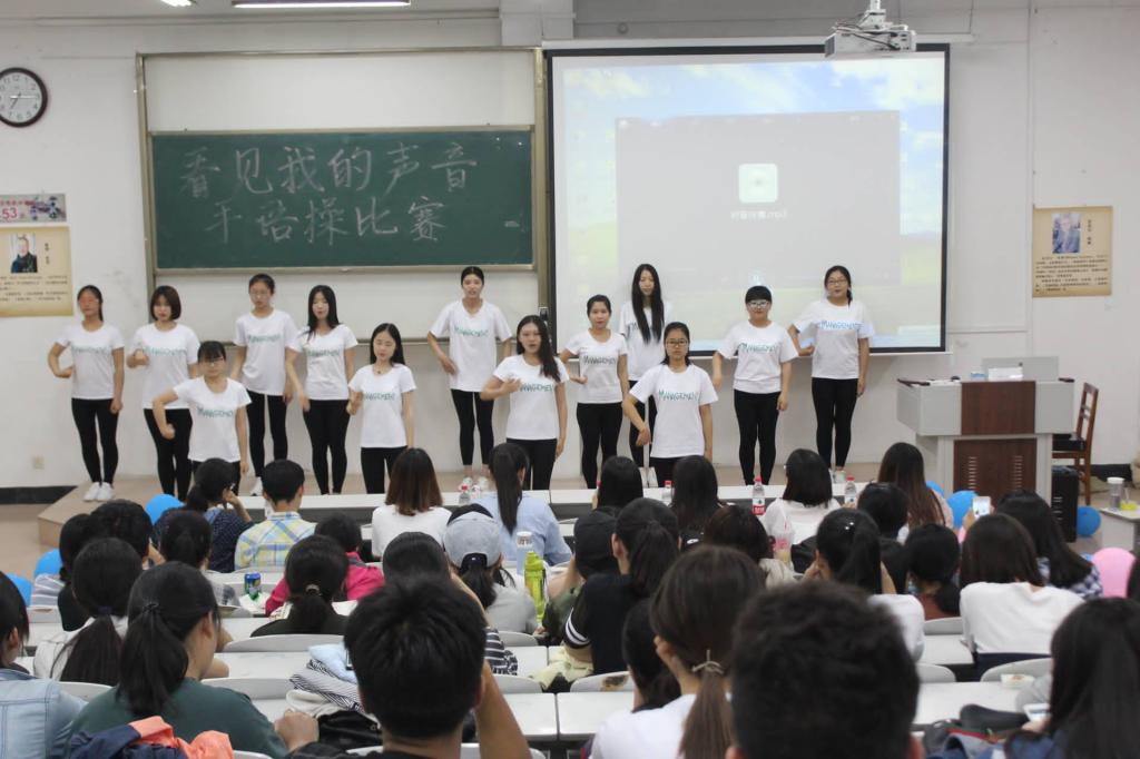 伴随着主持人风趣幽默的开场,比赛在轻松愉悦的氛围中开始。每支队伍根据事前抽签顺序依次上场,出色的表演给观众留下深刻的印象。满满青春朝气的笑脸与整齐一致的队伍,为现场带来一股清新暖意。在中间的游戏环节,同学们也是积极参与,你画我猜等趣味活动充分点燃了现场气氛。随着周杉同学一首《Everybody》的结束,此次活动也宣告结束。