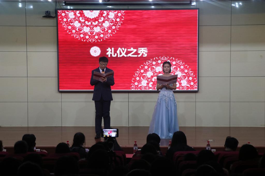 经过初赛的激烈角逐,共有十组选手脱颖而出。本次大赛由学院流行舞协会激情洋溢的舞蹈拉开序幕。第一环节礼仪之秀,选手分组搭配,并用展现各组个性的独特方式登台亮相。紧接着的才艺展示环节中,各位选手纷纷拿出自己的看家本领,无论是歌曲、二胡、小品、舞蹈还是诗朗诵,无不体现出选手们良好的文化素养。在第三环节知书达“礼”中,选手们自行选题并做答,此环节不仅展示了选手们丰富的礼仪知识储备,同时让观众们也了解到了关于礼仪方面的知识。最后由六位女生选手展示礼仪操表演,充分展现了当代大学生的良好风貌。最终由评委评选出一、二、三等奖及优秀奖并进行颁奖。