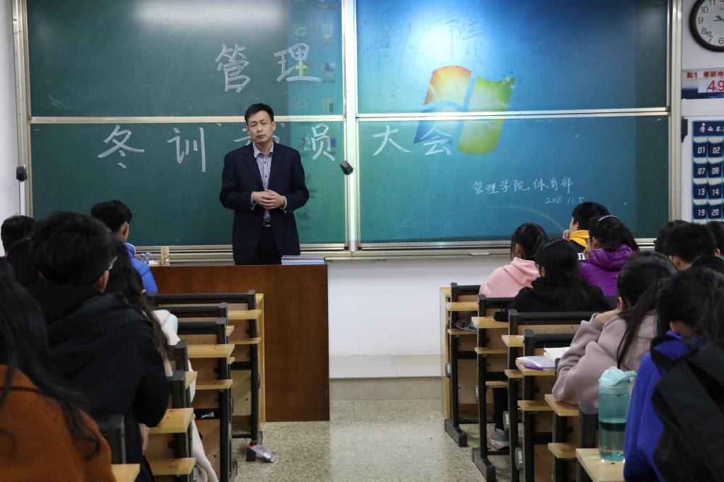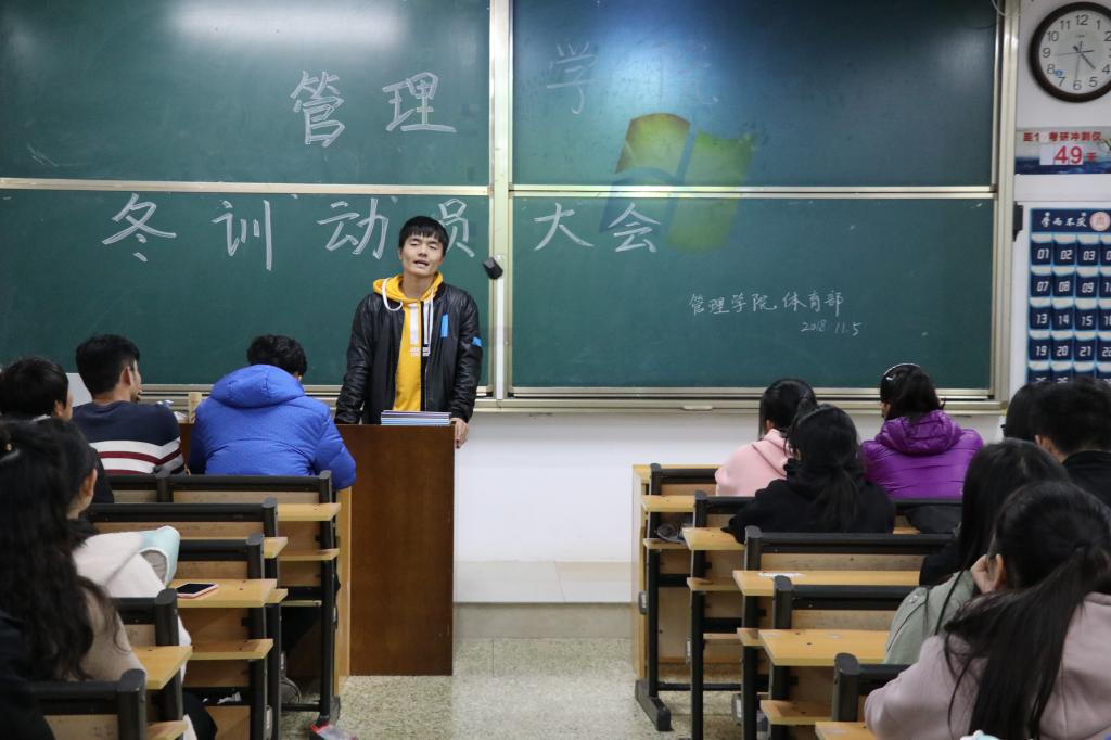于C102举行冬训动员大会,学院团委书记孙旭春和教练王浩出席活动。