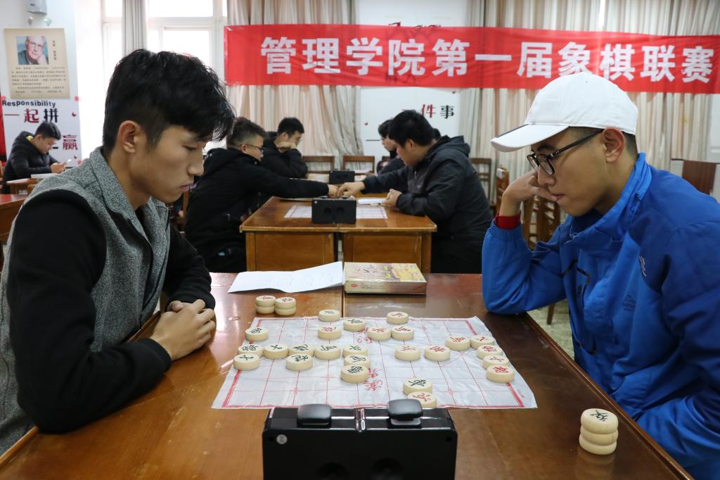 据了解,此次联赛由每个专业派一支代表队参赛,其他同学作为智囊团参与,根据比赛结果决出团体前三名和个人前三名。比赛中,对弈双方冷静观察棋面,谨慎布下棋局,认真思考、斗智斗勇,两两代表队经过三局激烈角逐,最终17级物流管理与17级财务管理1:1战平,18级物流管理2:1胜18级工商管理,18级财务管理2:1胜17级信息管理与信息系统。