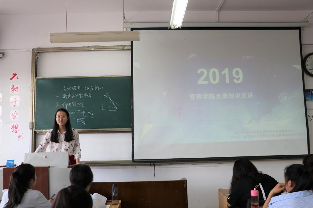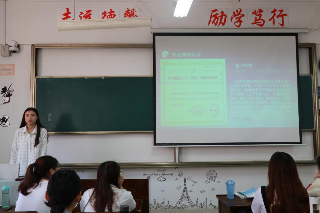宣讲人从学科竞赛、创新创业大赛、专业实践赛事等方面展开讲解,通过分析学院获奖学生代表的发展情况,强调当代大学生参与科技文化创新赛事的重要性。并以“全国大学生数学建模大赛”、 “全国大学生英语竞赛”、“‘互联网+’大学生创新创业大赛”、“沙盘模拟比赛”等为代表,详细介绍了竞赛的时间规划、比赛内容、申报经验及奖项设置等问题。同学们认真聆听,对赛事信息有了更为明确、深刻的了解。活动最后,青马工程部向同学们展示了历届获奖学生代表的优异成绩,较大程度地调动和鼓舞了同学们参与科创赛事的激情。