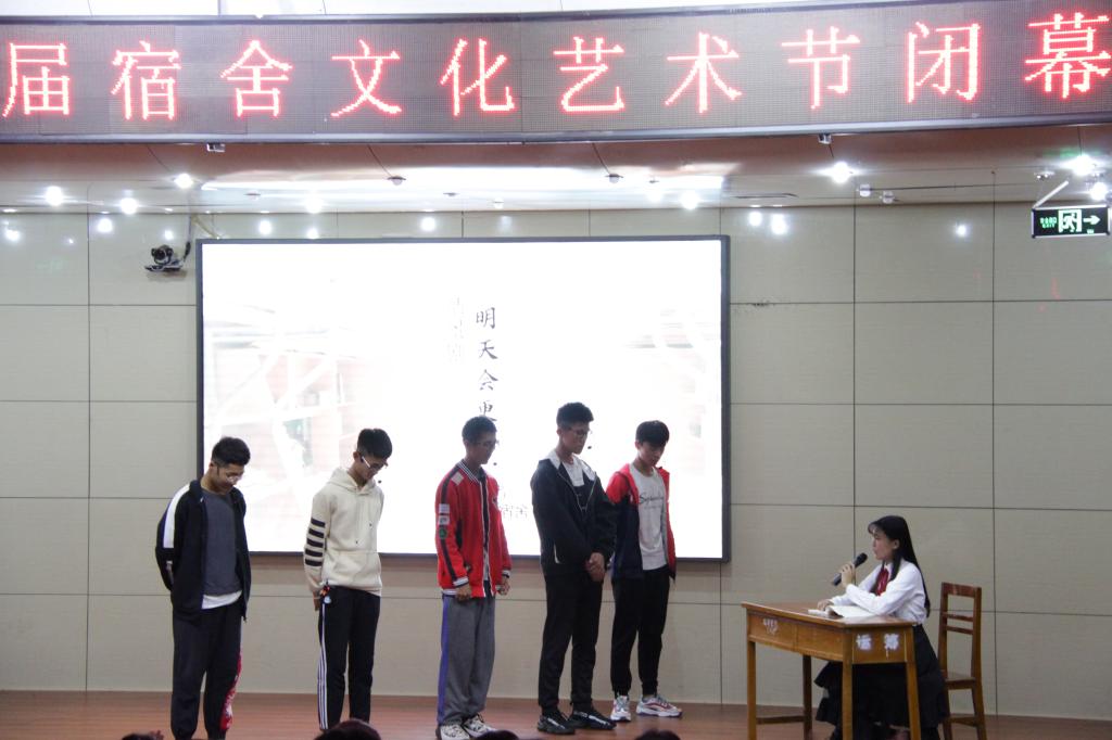 本次闭幕式在流行舞协会带来的热情激昂的开场舞中拉开帷幕。首先,在宿舍公约大赛中荣获前三甲的宿舍,分别向大家介绍了公约内容,并表达了坚持履行宿舍公约的决心。随后,在叠军被比赛中,“十佳叠军被能手”快速度高质量完成的“豆腐块”令大家拍手称赞。游戏环节“击鼓传花”更是将本场活动气氛推向了高潮。随后大家期待已久的宿舍联谊节目正式开演。小品《赶尽杀绝》揭露现实问题,批评了地铁里的不文明行为,呼吁大家要讲文明有爱心。歌曲串烧《棉花糖》则用轻快的节奏展现了青春的美好和少年的活力。诗朗诵《那些年我们好像很有钱》满怀深情,让我们懂得理解、关爱父母。情景剧《明天会更好》真实演绎了宿舍里的兄弟情谊,令人动容。最后,《赶尽杀绝》脱颖而出,荣获本次比赛的第一名。