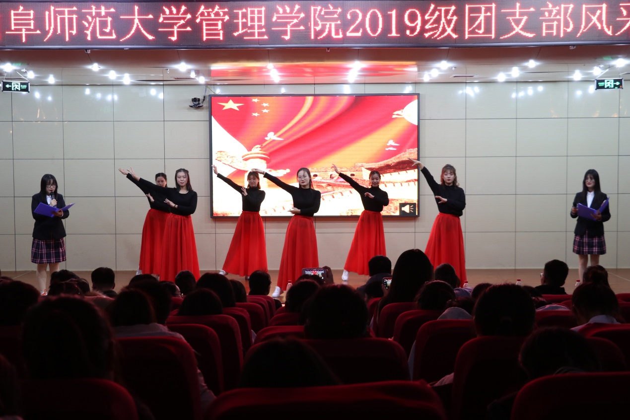 本次活动主要分为“我们的团支部”、“团支部风采展”以及颁奖三个环节。活动伊始,由各班团支部代表按抽签顺序依次对本班班徽、班训、班歌等进行讲解,多样的讲解形式充分展示了各班级积极向上的班级氛围以及班级特色。第二环节是最令人期待的团支部风采展,各班表演成员依次上台,通过情景剧、话剧、舞蹈、诗朗诵、歌曲等形式展现了各团支部的活力,赢得观众阵阵掌声。其中,19级工商管理三班用传统朗诵与情景剧相结合的方式,既表现了大学生的爱国情怀,也表现出了当代大学生激昂向上的生活态度;19级物流管理三班通过情景剧表现出对祖国爱的热情以及对未来的满心憧憬。最后,综合前期选拔和现场评委打分,2019级工商管理三班摘得桂冠,荣获“最美团支部”称号。
