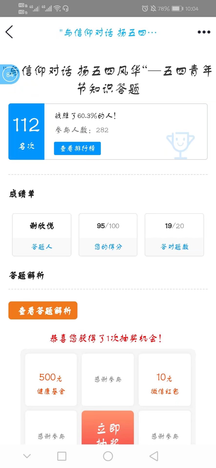 五四精神传薪火,激扬青春献祖国。三大主题团日活动在各级团支部顺利组织举办,用自己不同的方式演绎着青春的力量。 “不负青春,砥砺前行”主题活动中,团员青年创作、朗诵优秀诗歌,通过激扬的诗歌歌颂出自己内心的青春热血,以青春之名,传承“五四”之魂; 在“与信仰对话,扬五四风华”主题活动中,各团支部充分利用线上交流群讨论有关五四知识,参加五四知识竞赛,领悟五四精神,更好地铭记历史,展望未来; “中国梦·我的梦——我的生涯规划书”主题活动中,青年团员在线沟通探讨大学理想目标和对未来的职业规划,共话青年担当,凝聚奋进力量。