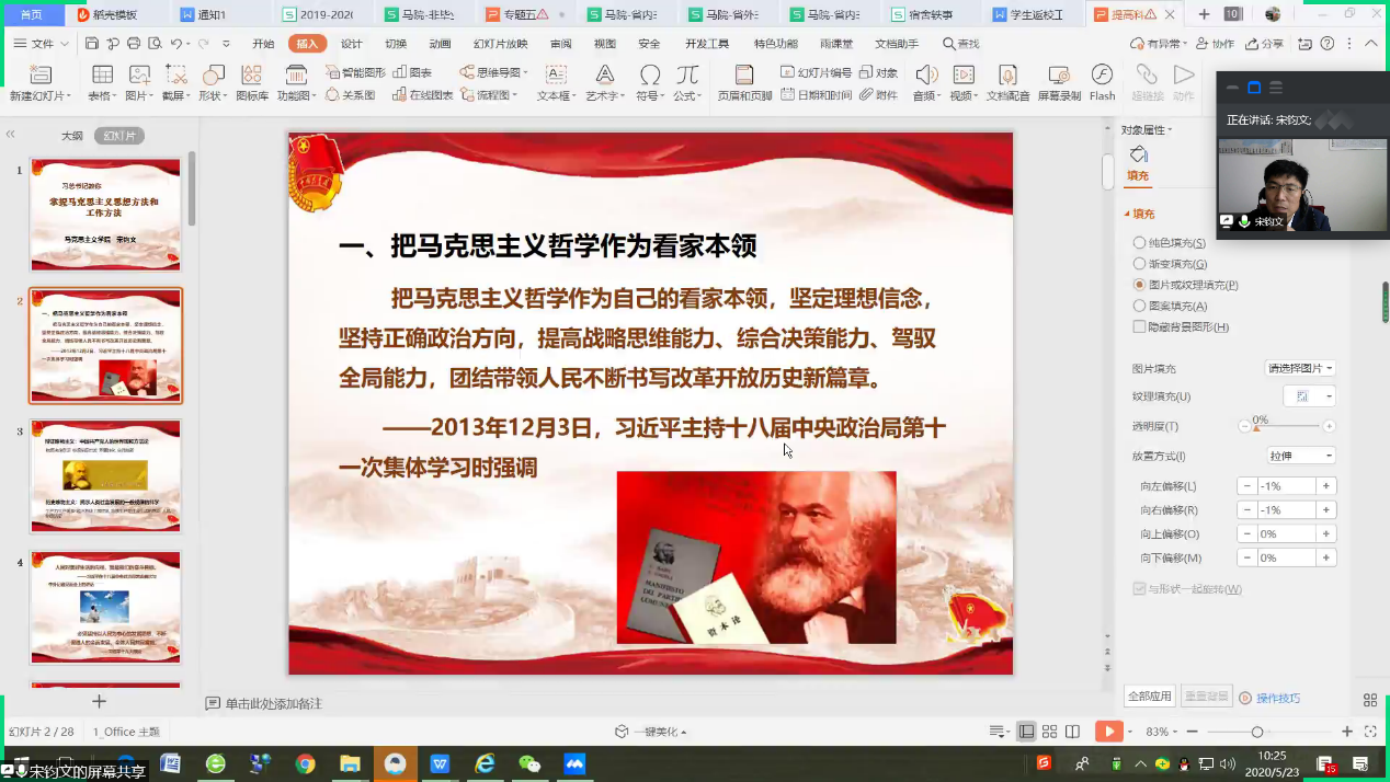 为加强“青年马克思主义者培养工程”的实施与建设,培养中国特色社会主义事业的合格建设者和可靠接班人,5月23日,风车动漫 依托腾讯会议,顺利举办主题为“掌握马克思主义思想方法和工作方法”的青马工程线上培训,马克思主义学院党委副书记宋钧文担任主讲。会议由风车动漫 团委书记孙旭春主持,风车动漫 学生干部及入党积极分子参会学习。