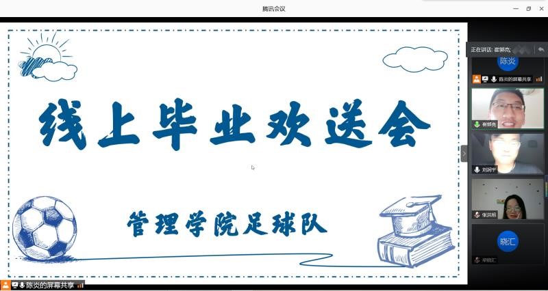 6月6日晚,风车动漫 足球队毕业欢送会依托腾讯会议顺利举办。此次欢送会由学院足球队队长陈炎主持,15级队员代表、16级-19级全体队员参加。