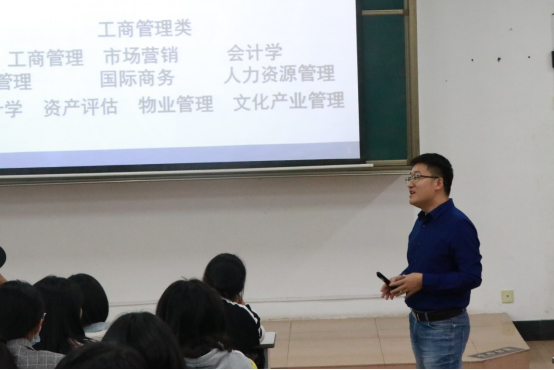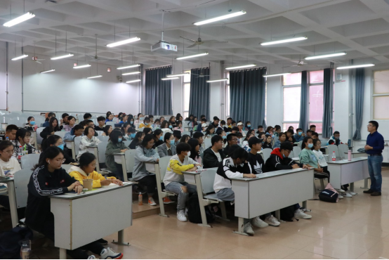 会议伊始,主讲教师介绍专业特点,并针对就业去向与拓展空间为同学们详细阐述专业的特长优势与研究方向。面对学生疑惑的考研就业问题,主讲教师以学院应届毕业生考研情况为例,积极鼓励同学们向更大的舞台发展。活动过程中,主讲教师对相关专业的核心课程进行了深度解读,强调专业课、高数课以及大学英语的重要性。待学生对专业有初步了解和认知后,主讲教师提出本科生要善于观察、认真学习,规划好四年的学习生活,找准自我定位,保持一定的自我管理意识和时间观念。