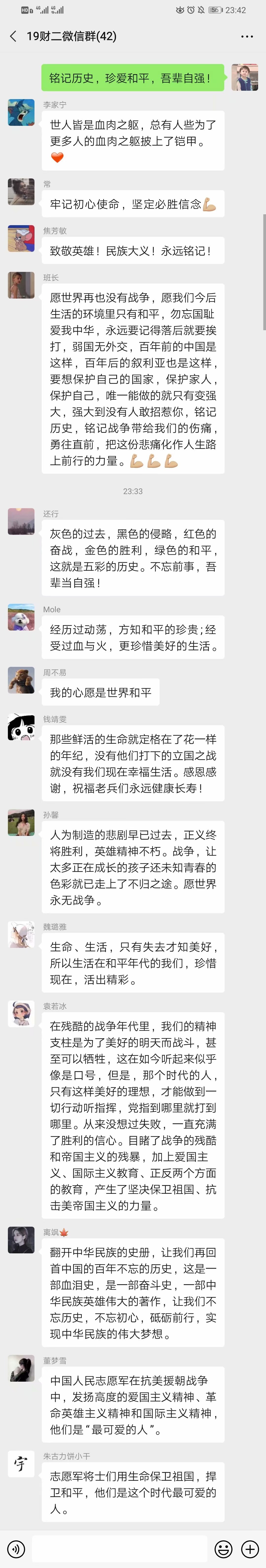 纪录片以抗美援朝的历史背景和艰苦的抗争岁月为主线展开,重现了中国共产党领导抗美援朝战争的光辉历程,全面反映了抗美援朝战争的正义性质和伟大胜利。在危急关头,中国人民志愿军不畏强敌、敢于斗争、舍生忘死,充分展现出其不怕牺牲、勇于奉献的革命英雄主义精神。一幕幕感人至深的场景,让团支部的每一位成员为之惊叹。观看结束后,各团支部成员积极分享自己的心得体会,一致表示:要以抗美援朝的革命英雄为榜样,秉持英雄精神,勇于承担责任,以更好的状态投入到今后的学习和工作中。