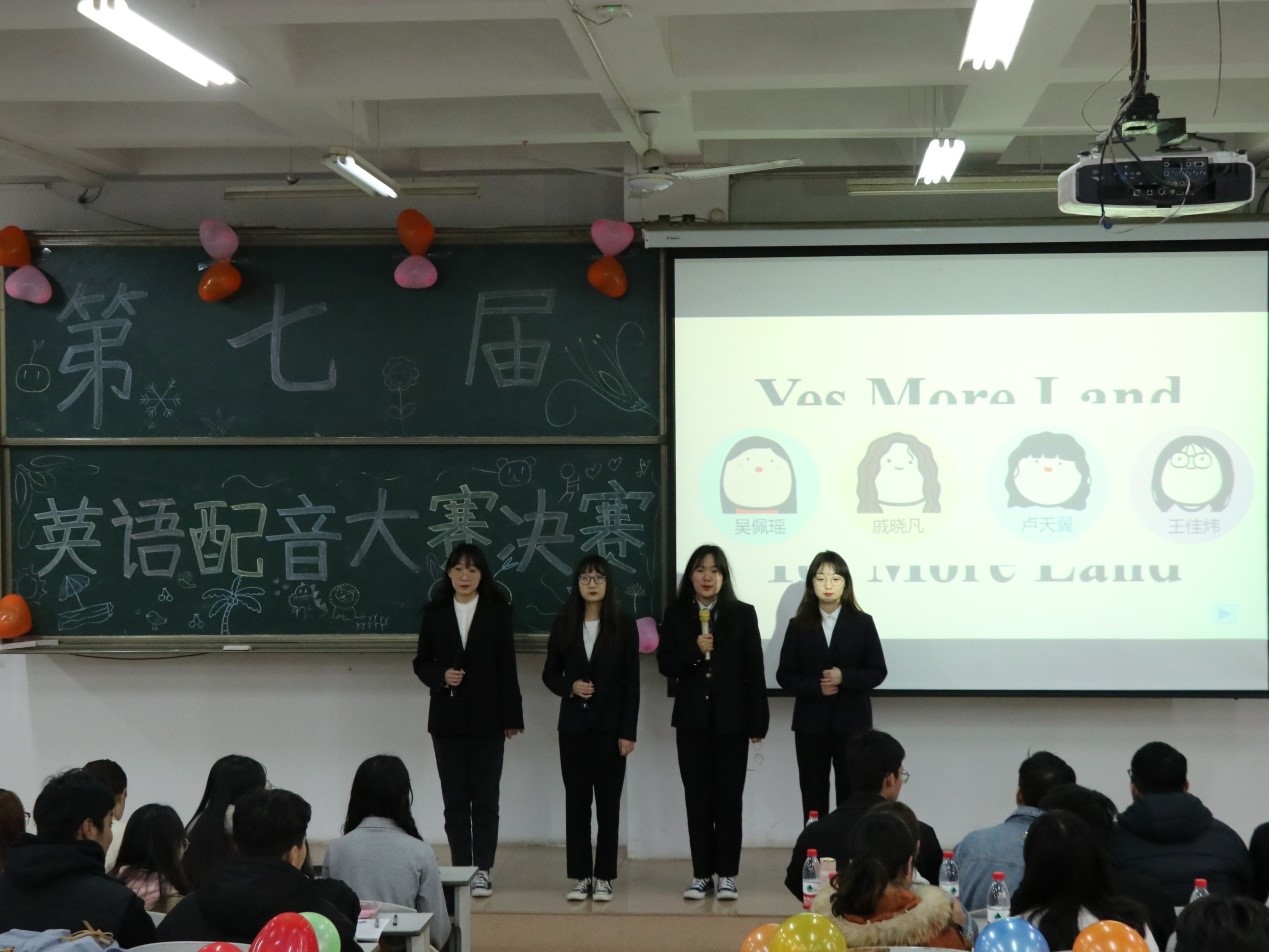 本次活动共分为两个环节。第一环节——英语比拼,各个团队按照比赛前抽取的顺序,依次进行英文版脑筋急转弯和单词版你画我猜的比拼,选手们通过生动灵活的表演给出令人意想不到的答案,现场观众捧腹大笑。第二环节——英语配音,各个团队对选出的电影片段进行配音,用饱满的感情,生动的表演和纯正的英文发音为现场观众带来一场精彩绝伦的视听盛宴。随后,由特邀嘉宾现场演唱的一首《素颜》,引得全场观众欢呼共鸣。最终,经过公平公正的评判与打分,“Yes more land队”荣获特等奖、“涛笙依旧队”荣获一等奖。