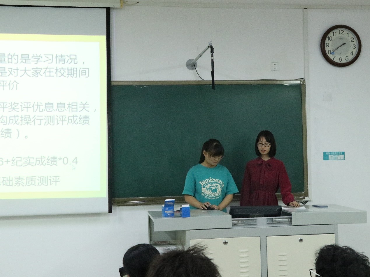 宣讲会伊始,主讲人为新生讲明开展入学教育的目的,希望通过此次宣讲,帮助新生了解学院各项量化标准,更好地适应大学生活。征信部主讲人从量化的重要性、加分扣分标准和量化管理三个方面为新生介绍学院对学生提出的要求,使新生明确大学生活的基本准则。最后,征信部借助19级量化汇总表作为样板给新生进行展示,有助于新生更直观地理解量化统计方法。