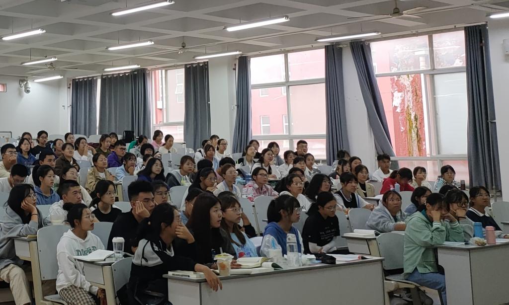 组织部宣讲人员从党的历史、入党原则、入党流程和入党申请书书写规范四个方面展开宣讲:首先介绍了中国共产党的性质、宗旨等方面,接着向新生说明了入党的基本发展流程,阐述了入党积极分子的评选要求与标准,最后宣讲人详细讲解了书写入党申请书的规范格式。