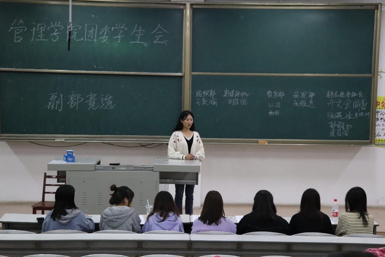副部竞选分为演讲和答辩两个环节,竞选者需要先进行演讲,展示自己的优点与长处,总结在部门中获得的经验与感悟,随后进行答辩,对部长的提问做出回答。演讲过程中,竞选者毫不怯场,言辞流利举止大方,对过去一年的部门工作进行总结,阐述自己的竞选原因及竞选优势,并对未来的工作进行规划。答辩环节中,竞选者面对部长犀利的提问丝毫不慌乱,有条不紊、沉稳从容的从多方面多角度进行回答,结束时赢得现场阵阵掌声。副部竞选为竞选者提供了一个展示自我、提高表达能力的平台,有利于竞选者自身能力的提升。