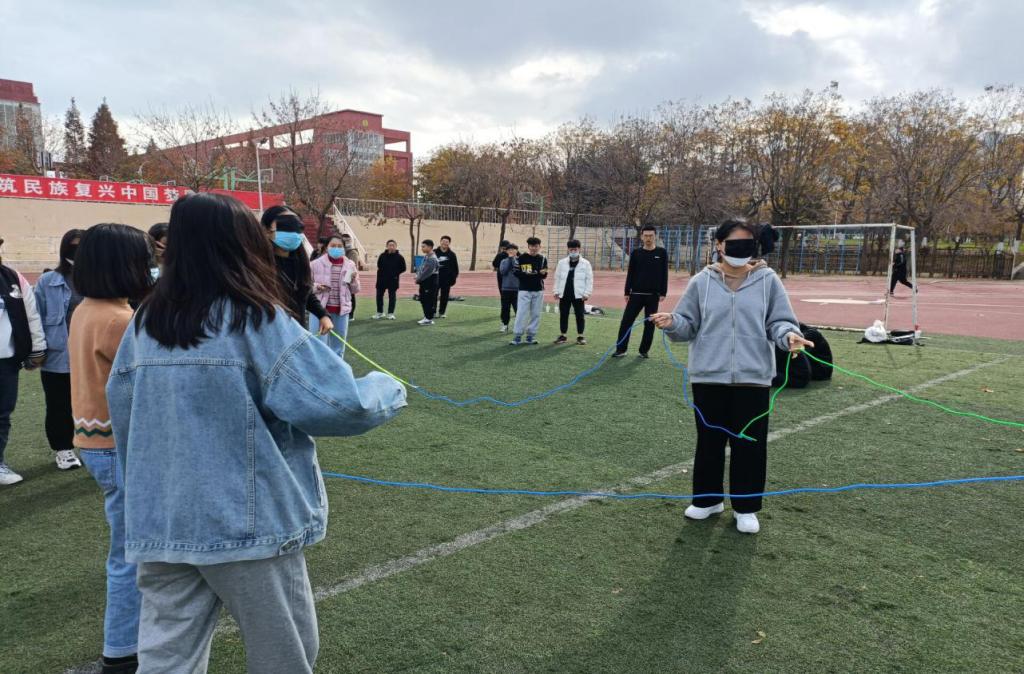 心理健康服务部为同学们准备了“纸衣往返跑”、“一元五毛钱”、“盲人方阵”等激发同学们兴趣的游戏,并准备好游戏道具。一个个精心设计的团建游戏激发了大家浓厚的兴趣与热情,活动过程中,同学们积极参与,或奋力奔跑,或斗智斗勇,或团队协作,每个活动结束大家共同分享成功的喜悦和挑战的激情。操场上,同学们的心“同频共振”,愉悦的笑声直飘远方。