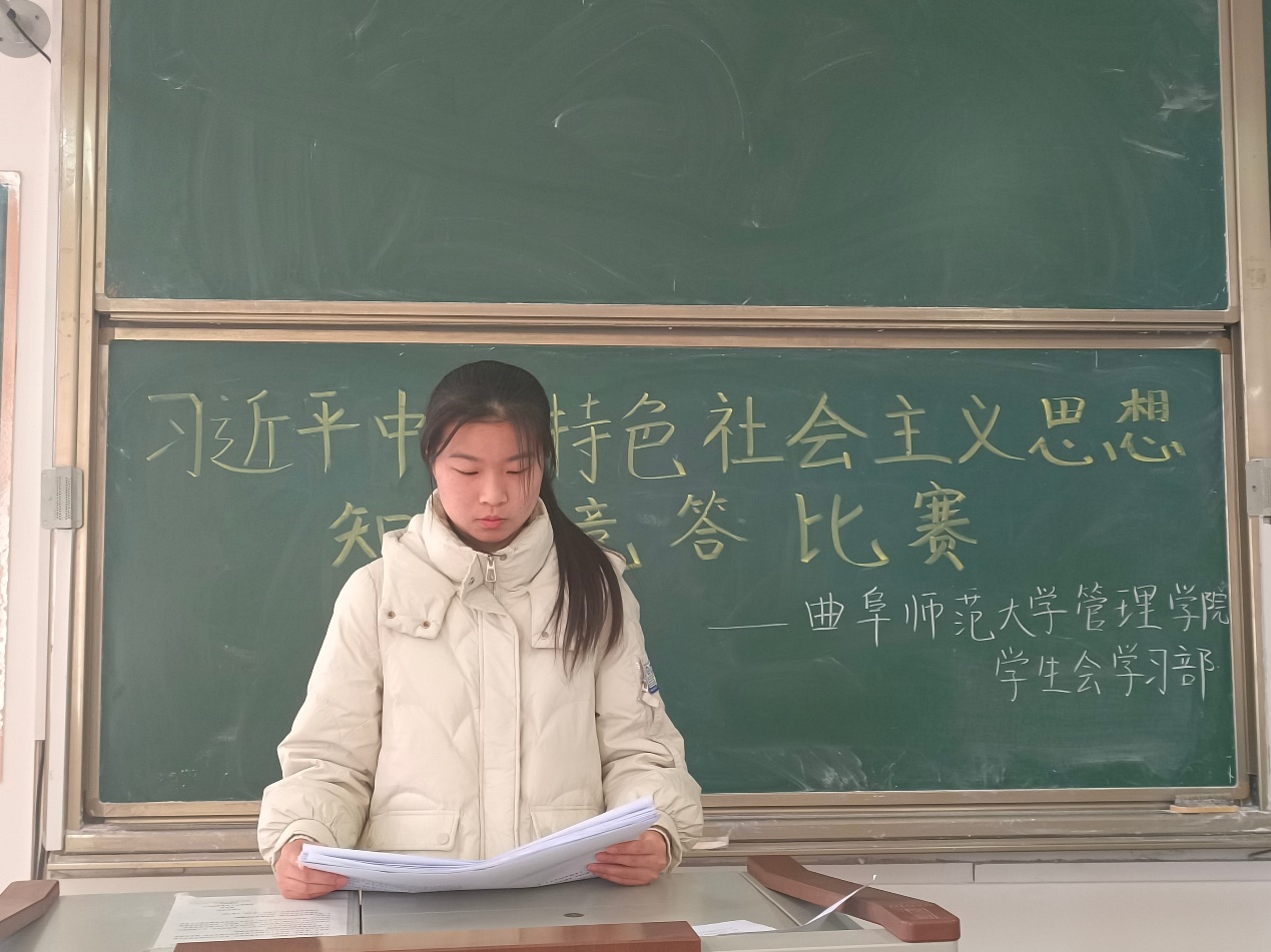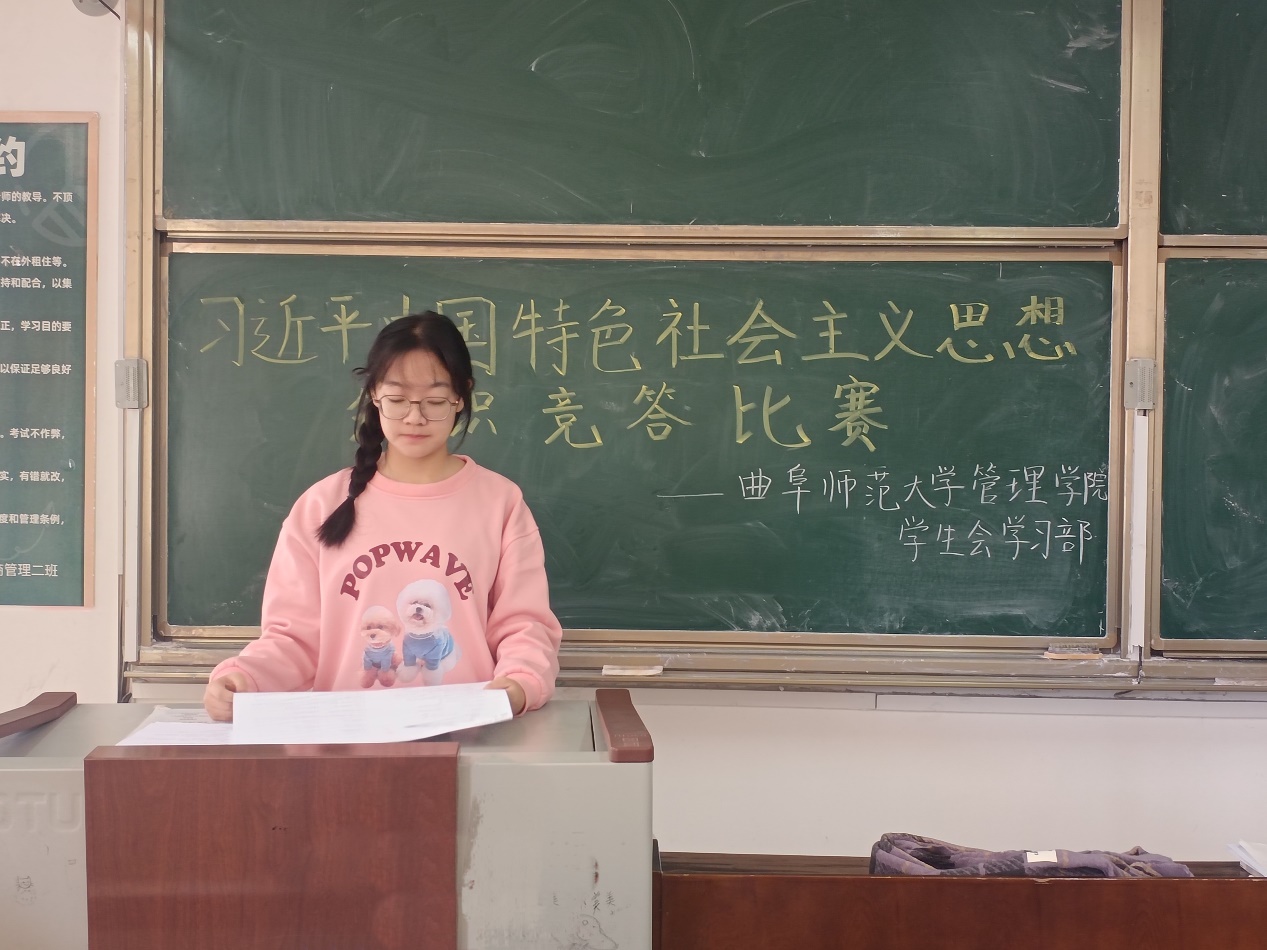 此次知识竞赛的题目由习近平总书记的重要讲话、共产党党史、《中国共产党章程》和党的二十大报告组成。既考察了参赛选手们的综合素质,也在一定程度上向同学们普及了习近平新时代中国特色社会主义思想。在此次知识竞赛的现场,竞赛氛围严肃认真,选手们沉着冷静、作答有力,展现了充足的赛前准备与知识储备。