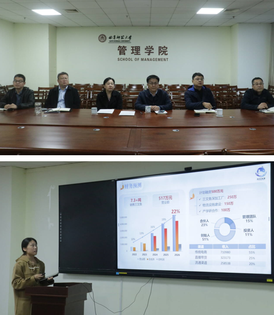 学院创新创业项目《鱼洁冰清》和《橙就》的团队负责人就项目背景、社会痛点、项目优势等内容分别进行路演汇报。姜美颖对项目的可行性、项目策划与商业模式创新等方面作点评;郑勇对项目存在的痛点问题、技术壁垒和创新方向进行指导。