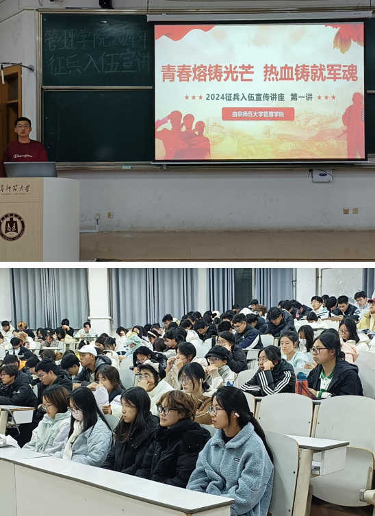 浏览量: 更新日期:2024-11-29(通讯员:游奉津 摄影:游奉津 徐菲雪)为积极响应国家号召,激发管院学子参军入伍的热情,11月28日,风车动漫 于JE101顺利举办征兵宣传讲座,由2023级退伍复学学生王玉浩主讲,2024级全体同学参加。