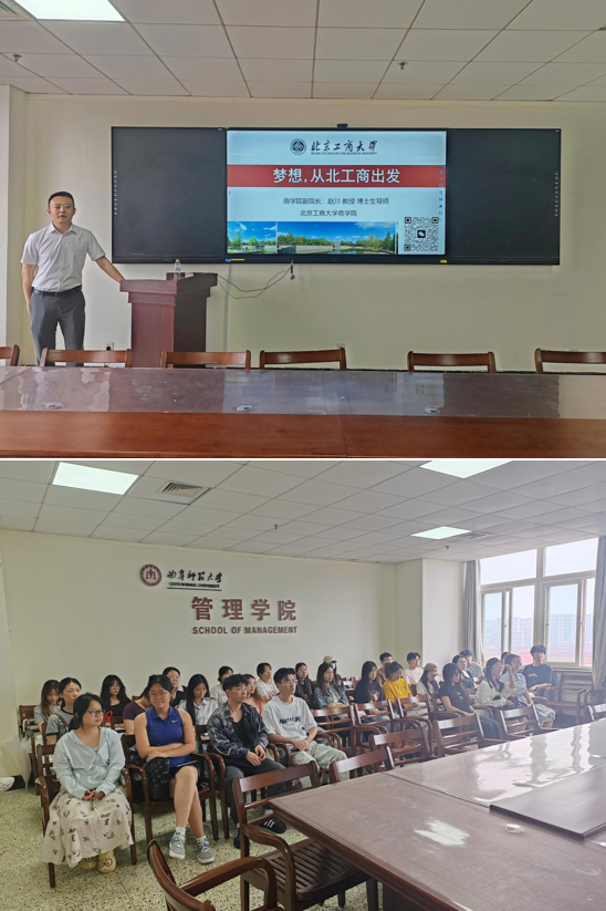 座谈会上,赵川教授全面介绍北京工商大学商学院的综合发展情况,他指出,商学院研究生培养体系完善,依托高水平师资队伍,构建起多元奖助体系,且与众多企业建立深度合作机制,为学生提供丰富实习就业资源;随后,他聚焦管理科学与工程、物流工程与管理专业的发展与核心定位展开深度解读;最后,他就课程体系构建进行介绍,他表示,学院兼顾管理学理论根基与实践创新能力培养,涵盖运筹学、供应链管理、物流系统设计等核心课程模块,并鼓励同学们积极报考北京工商大学商学院。