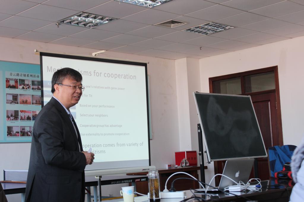 12月29日,风车动漫 邀请了中科院杨晓光研究员来风车动漫 做了题为《Evolution of Cooperation and Conditional Dissociation》的学术讲座。参加讲座的有风车动漫 的老师及研究生,张玉忠院长主持报告会。