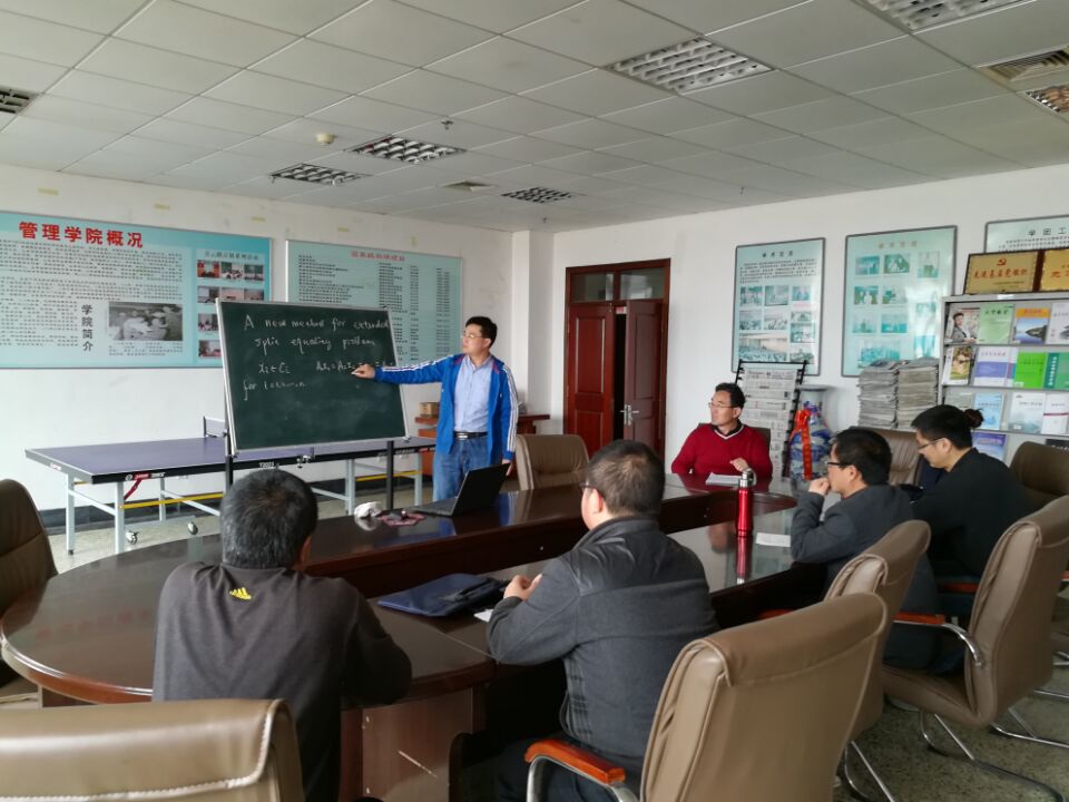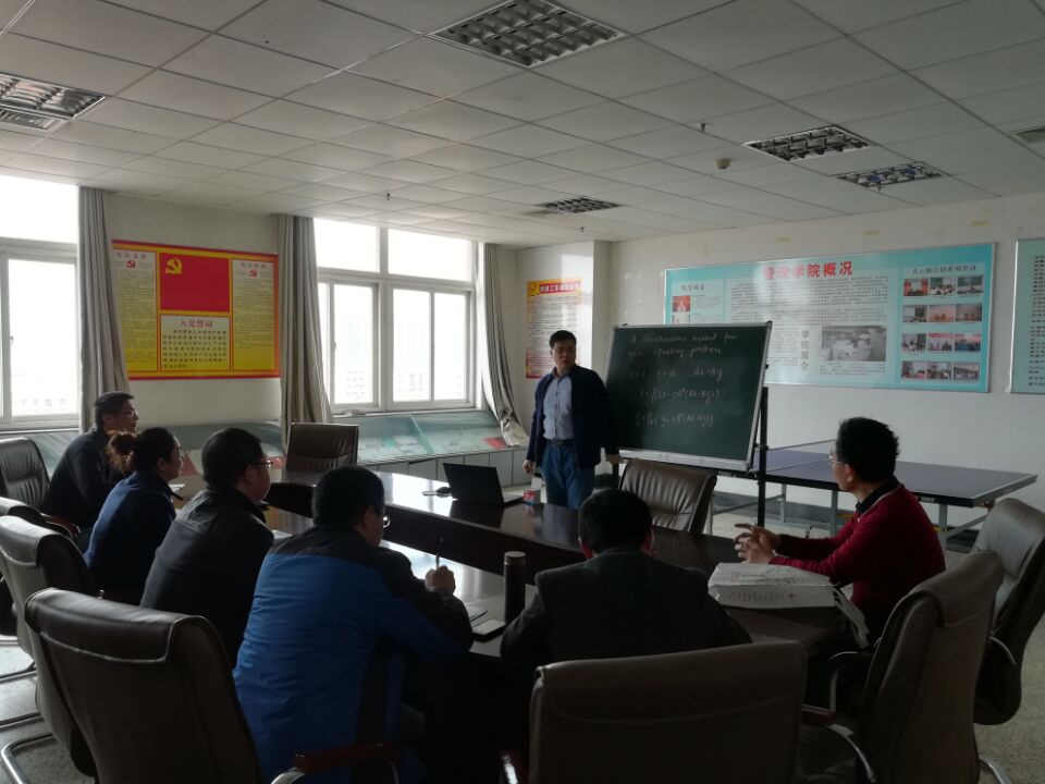 车海涛副教授从博弈论和偏微分方程的区域分解方法两个方面引入裂等式问题和裂等式不动点问题,详细介绍了该问题的两种并行的优化算法以及收敛性分析。该报告内容丰富,深入浅出,简洁清晰,讲解生动,使大家理解了当前裂等式问题的发展动态,提升了师生的学术境界,让大家受益匪浅。报告会后,参会师生还就学术研究方向等共同关心的问题与车海涛副教授开展了热烈的讨论和交流。