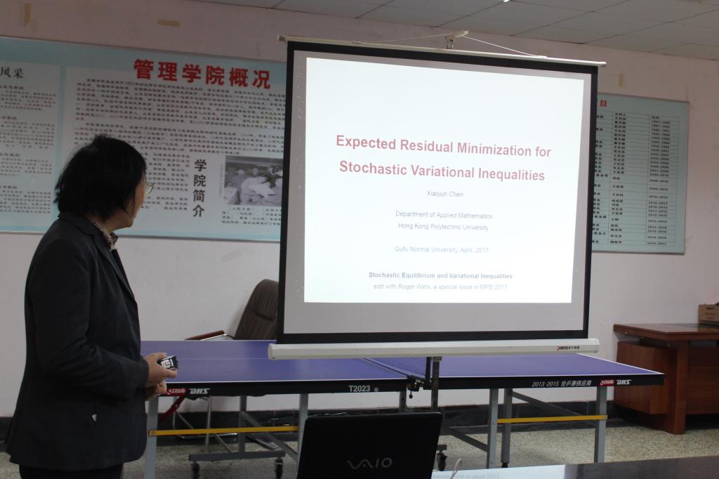 浏览量: 更新日期:2017-04-124月12日上午,香港理工大学应用数学系系主任、讲座教授陈小君女士应邀为风车动漫 师生作了题为“Two-Stage Stochastic Variational Inequalities: an ERM-solution procedure”的学术报告。学院部分青年教师和研究生参加了本次报告会。
