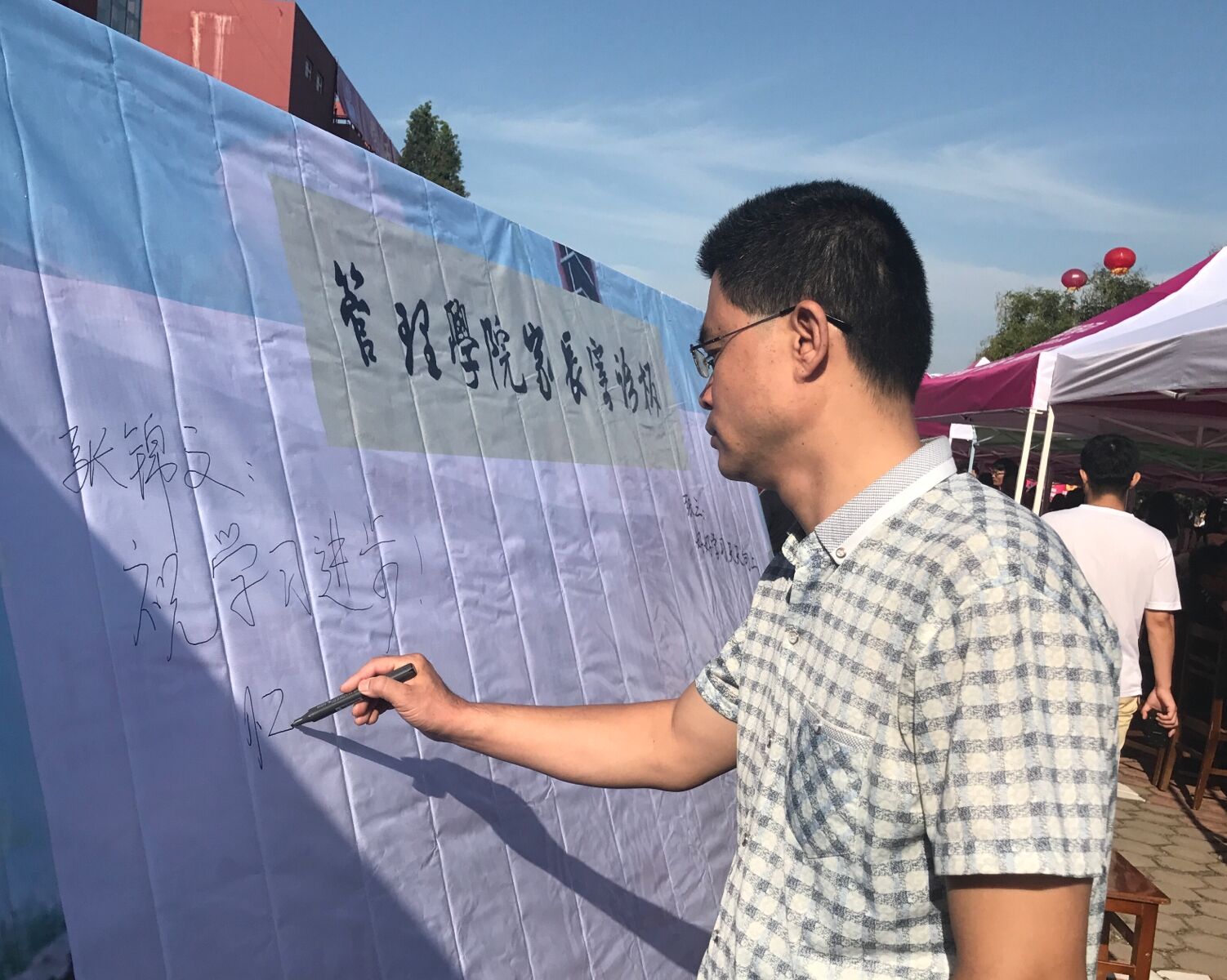 实际情况,实行“一带三”帮助新生尽快融入大学生活。学院在为新生办理入学手续的基础上,设计了独特的“火车票”、“朋友圈”和“寄语墙”。新生与家长在“火车票”前合影留念,坐上青春号的列车,驶向梦想的终点,并在“朋友圈”中晒出了大学生活的崭新开始。家长在“寄语墙”上写下一段段对新生未来生活饱含期待与祝福的话语。学院为所有新生准备了精美的明信片,鼓舞新生莫负韶华,奋勇向前。