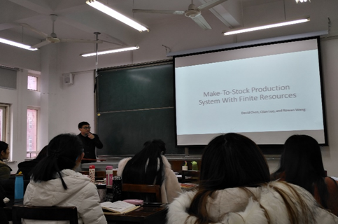上午8点40分-上午9点40分,罗谦博士在音乐楼Y310教室作了题为《Make-to-stock production systems with finite resources》的学术报告。