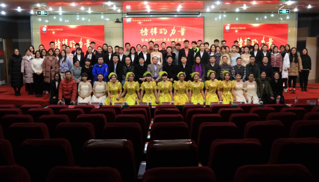 颁奖典礼上,优秀学子神采飞扬。上百名优秀个人、优秀集体得到表彰,包括:全国大学生数学竞赛国家赛区一、二、三等奖获得者,山东赛区一、二、三等奖获得者;全国大学生数学建模竞赛全国二等奖团队,山东省一、二、三等奖团队;全国逆向物流设计大赛国家级优秀奖获得者;大学生财务决策大赛北区三等奖获得者;第八届山东省大学生创新创业大赛省级三等奖团队;暑期“三下乡”社会实践国家级优秀队伍和国家级优秀报道奖队伍;“挑战杯”全国大学生课外学术科技作品竞赛省级一等奖团队;国家奖学金获得者、省政府奖学金获得者、山东省优秀毕业生,国家级科技创新项目获奖团队,荣获全国英语竞赛国家级一、二、三等奖的学子,以及高分通过雅思考试的同学。此外,还表彰了山东省优秀班集体、曲阜师范大学十佳百优班级、曲阜师范大学十佳学子、学霸宿舍、文明宿舍、科创宿舍、文体宿舍、军训优秀标兵、优秀运动员、三好学生标兵、优秀学生干部、年度专业之星和年度人物。张玉晶、王丽、吕文蓉、王永霞、王玉杰、袁媛等优秀学子代表先后发言,道出对师弟师妹们的殷切希望:在前进的道路上,要永葆自信和激情,见贤思齐,刻苦奋斗。期间,还呈现了歌曲、舞蹈、手语操、微话剧、诗朗诵等才艺展示。