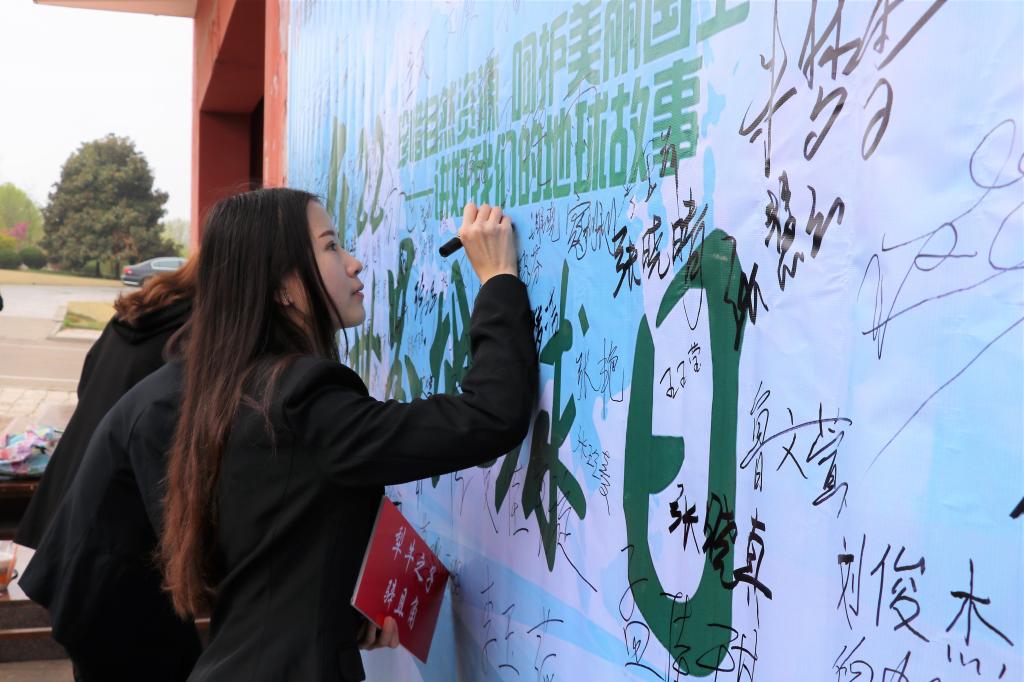 本次签名活动以第49个世界地球日为契机,号召大家树立正确的环保观,倡导绿色简约生活,呼吁大家呵护校园环境,努力践行十九大报告中习近平总书记指出的“绿水青山就是金山银山”和“美丽中国四大举措”,树立“人与自然和谐共生”理念,保护我们的生态文明,共建美好家园。