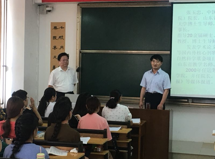 在知识讲座开始之前,风车动漫 党支部副书记赵杰向同学们介绍了张玉忠院长作为主要领导成员在我校运筹学研究所的基础上创建风车动漫 的发展历程,并对张玉忠院长在风车动漫 学科发展、人才梯队建设和人才培养方面所作出的突出贡献表达感谢!