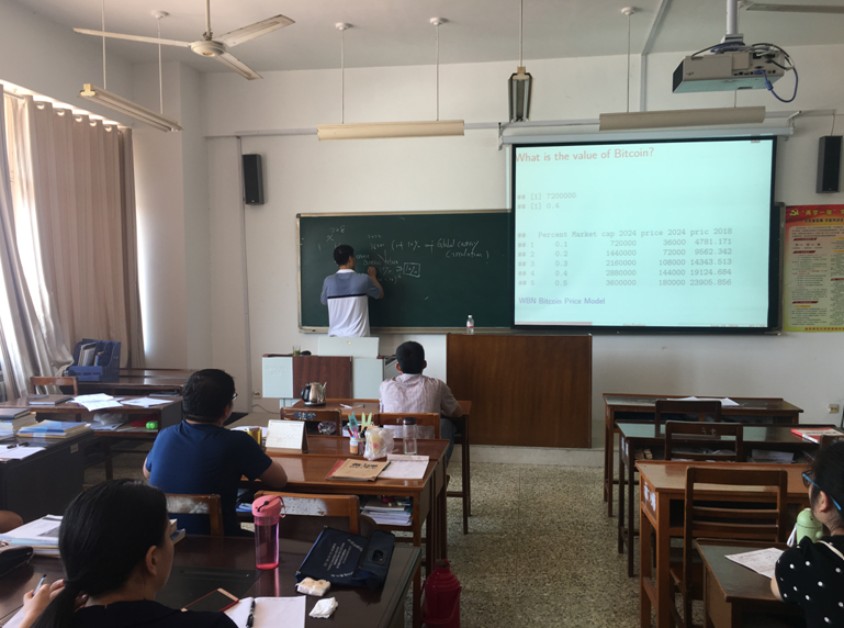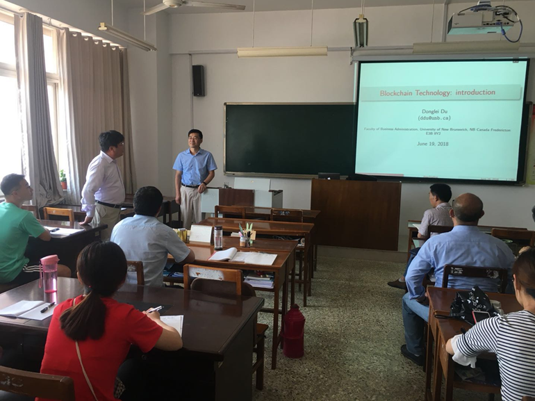 浏览量: 更新日期:2018-06-236月20日—6月22日,加拿大新布朗什维克工商风车动漫 副院长杜东雷教授应运筹学研究院邀请来曲阜师范大学风车动漫 ,做了题为“BlockChain Technology”的系列专题讲座,本专题讲座以比特币为主要事例,介绍区块链技术的基本概念,机制及应用。讲座由曲阜师范大学运筹学研究院院长张玉忠教授主持。