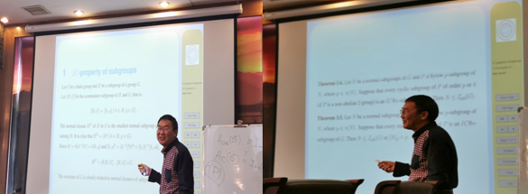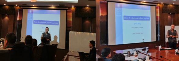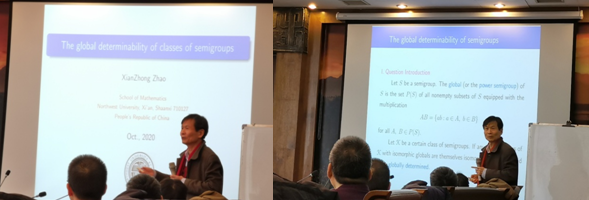 子群,子群的性质对群结构的影响,多重循环群,以及半群的确定性问题介绍了自己的相关工作,向大家展示了这四个方面的研究前沿。此外,四位老师结合自身的科研经历,给年轻老师和同学们提供了宝贵的经验和方法。与会师生对四位教授的报告给予充分的肯定,受益匪浅。