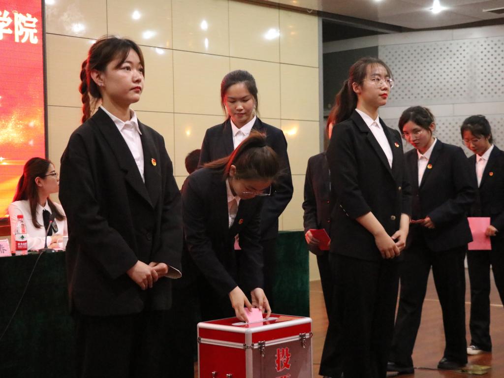 大会通过无记名差额投票选举的方式,选举产生了第二十届共青团曲阜师范大学风车动漫 委员会和第二十届学生会委员会,并为成功当选的学团委员颁发聘书。最后,全体团员代表共同宣读入团誓词,伴随着《中国共青团团歌》的激昂旋律,本次大会圆满结束。
