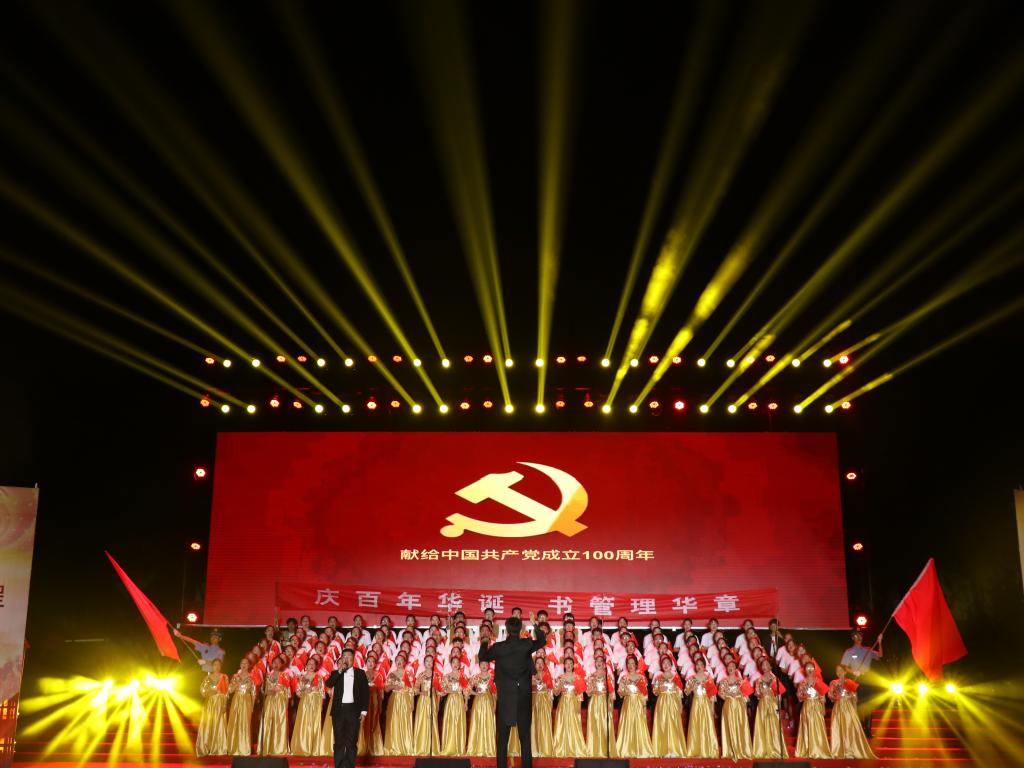 6月26日晚,为庆祝中国共产党成立一百周年,曲阜师范大学在日月广场隆重举办以“百年辉煌路,启航新征程”为主题的师生文艺汇演,风车动漫 合唱团用激昂的旋律、嘹亮的歌声向党的百年华诞献礼。