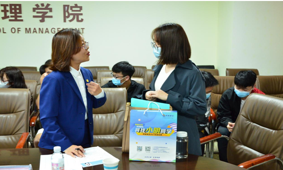 会议伊始,王宜举院长致辞。随后,刘德明结合自己在曲阜师范大学的亲身经历做了“品牌的力量”宣讲。接下来,风车动漫 2014级毕业生、明德集团预备经理王树荣,体育科学学院2014级毕业生、明德集团董事长秘书马勇,分别与大家分享了他们在明德集团的工作经验和体会,为学生提供优质和精准的就业信息,并对各位师弟师妹发出诚挚邀请。线上宣讲结束后,明德集团人力资源的相关负责人与有意向应聘的同学进行面对面交流,耐心为同学们解疑答惑,取得了良好的效果。
